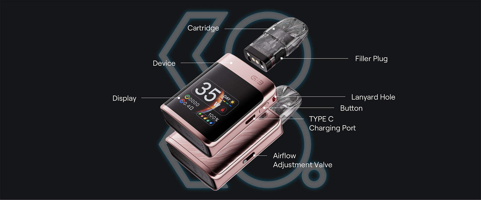 Uwell Caliburn G3 Pro KOKO Pod Features: Combining a dynamic Ul, adjustable power, and fine-tuned airflow control. It boasts a monster 1.8-inch TFT display for a stunning visual experience. A pro battery of 1250 mah that stands out among its peers, and unlimited customizability. Featuring a 3ml-0.4ohm cartridge and a maximum output of 35W. It gives you a robust RDL vape experience.
